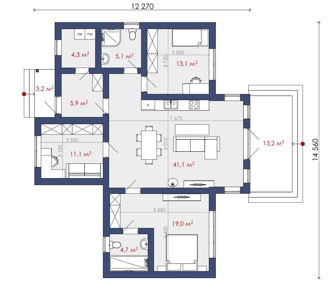 Площадь — 109.3 м²