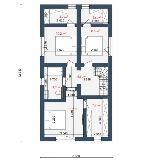 • Размеры — 14.9 х 12.7 м
